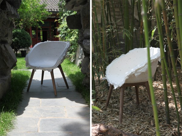 The wuhao showroom in beijing invited the pinwu design studio for the first time in 2011. The unique surrounding of the location and the pinwu works are forming a harmonious unit. The awarded - piao - paper chair was displayed in an ensemble consisting of two chairs, a solid beech wood table and a bamboo lamp.